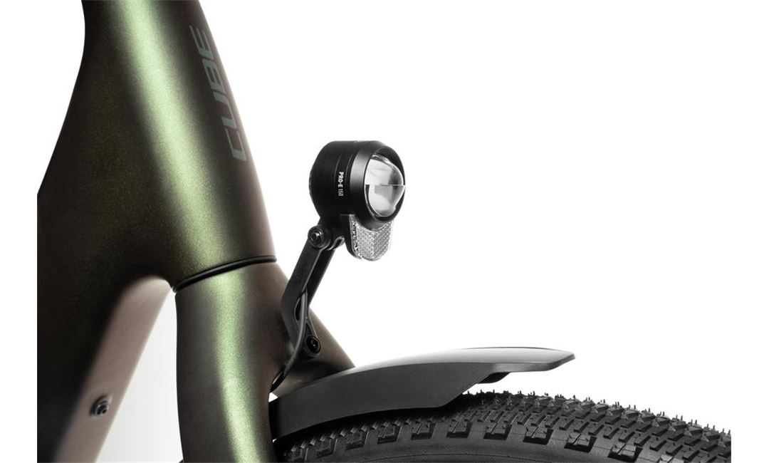 La luz frontal para bicicletas eléctricas ACID Pro-E 150 combina una potencia LED eficiente con un diseño de lente convexo recientemente desarrollado, peso reducido y dimensiones compactas. Gracias a la luminosidad de 150 lux/600 lúmenes con función DRL automática, es fácil ver y que te vean en cualquier clima o a cualquier hora del día, y la protección ambiental IPX6 hace que la luz sea impermeable incluso a salpicaduras a alta presión y desde cualquier ángulo. La certificación StVZO garantiza que la luz cumple con la normativa alemana de circulación en carretera y además es posible instalar un reflector personalizado. Fácil de montar gracias a su compatibilidad total con el sistema GoPro. Está disponible en una amplia gama de soportes de fijación al manillar, la horquilla o el soporte frontal FPILink. Como alternativa, se puede usar el soporte GoPro X-Lock e instalar la luz en casi cualquier lugar de la bicicleta. El cable de 150 mm con X-Connect permite que funcione perfectamente con todas las bicicletas eléctricas CUBE que disponen de puerto de luz X-Connect. Las bicicletas eléctricas CUBE de modelos anteriores también se pueden convertir con un cable X-Connect a Bosch BES2/3, y la luz también es compatible con todas las nuevas baterías externas de ACID.